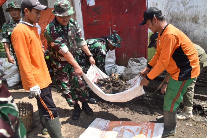 Rayakan HUT TNI ke-80, Kodim 0707 Bersama Warga Bersih-Bersih Pasar Induk Wonosobo