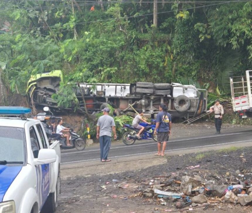 Kecelakaan Lagi di Kalijambe Purworejo, Truk Tronton Terguling Akibat Rem Blong