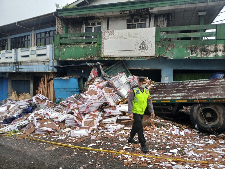 Rem Blong di Jalur Turunan Kertek, Truk Keramik Hantam Ruko Pasar