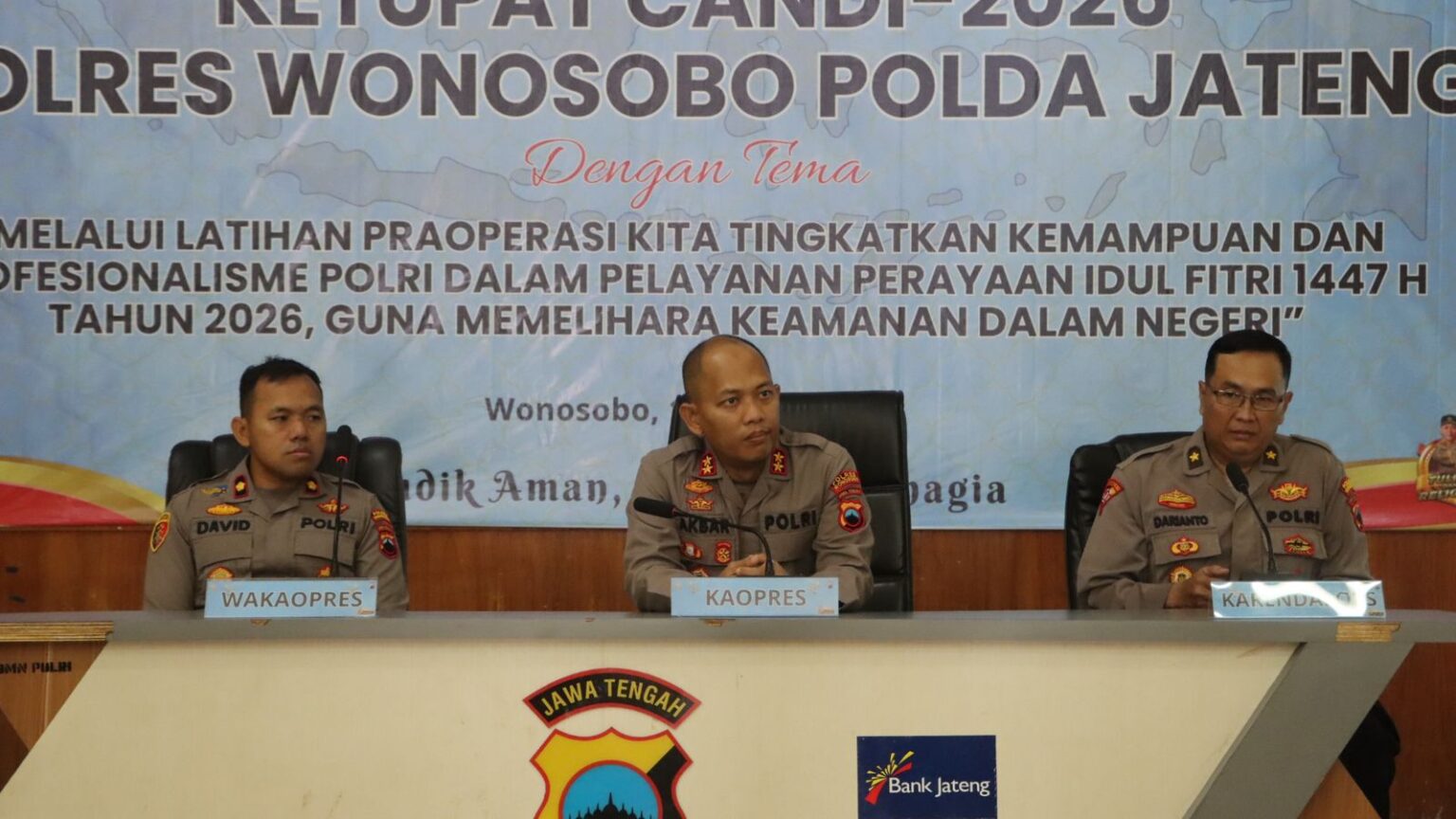 Sebagai bagian dari persiapan operasi, Polres Wonosobo juga menggelar Latihan Pra Operasi (Lat Pra Ops) pada Kamis, 12 Maret 2026, di Gedung Serbaguna Polres Wonosobo.