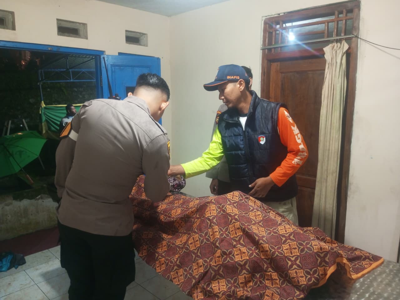 Petugas SPKT bersama tenaga medis dari Puskesmas Sapuran tiba di lokasi dan melakukan pemeriksaan.