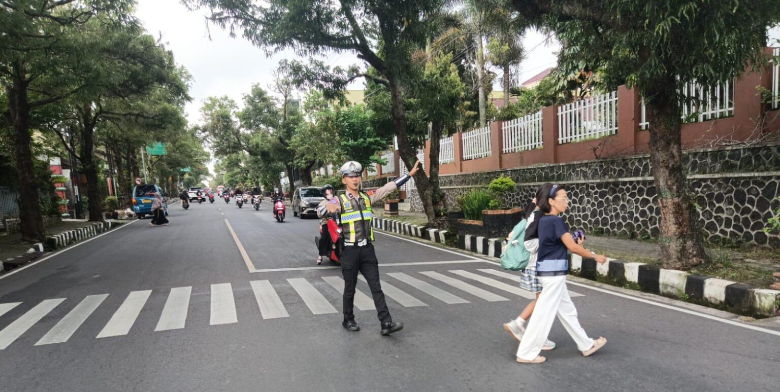 Di bawah koordinasi Ipda Suryadi, Kaurbinopsnal Satlantas Polres Temanggung, para petugas turun langsung ke lapangan untuk mengatur lalu lintas, membantu penyeberangan, hingga memberikan imbauan keselamatan berkendara kepada pengguna jalan.
