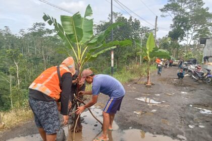 Puluhan Tahun Rusak Parah Tak Diperbaiki, Warga Mojotengah Tanam Pisang di Jalan