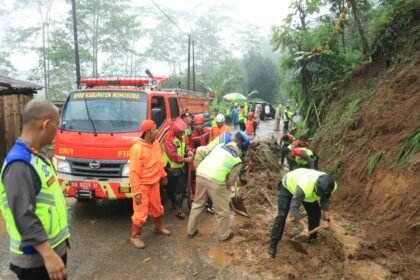 Aksi Cepat Kapolres Wonosobo Buka Jalur Pasca Tanah Longsor di Mojotengah