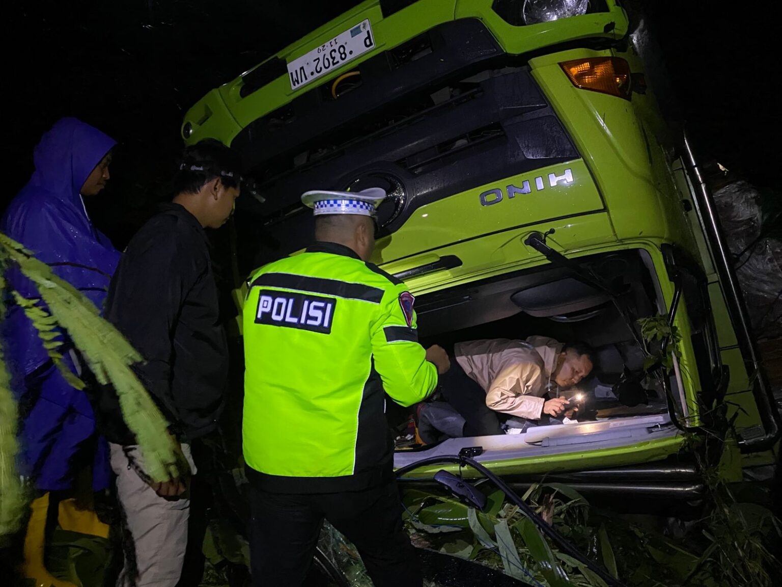 “Truk melaju dari arah Kertek menuju Balekambang. Saat melewati jalan menurun dan beraspal licin, kendaraan terlalu ke kiri hingga akhirnya terperosok ke perkebunan warga dengan kedalaman sekitar 20 meter,” jelas Aiptu Nanang, Selasa malam.